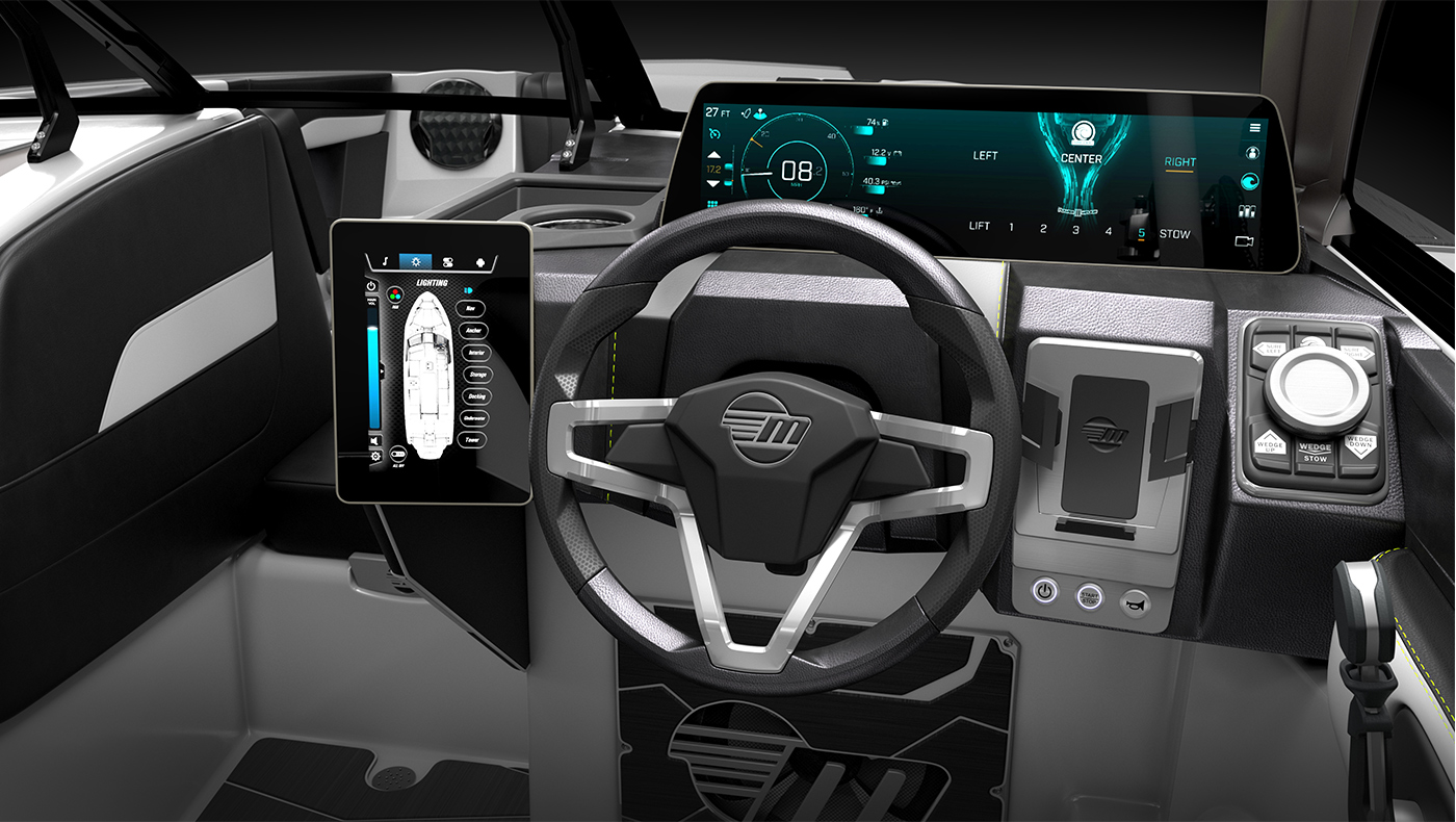 新型となる2025年 Malibu Boatsコマンドセンターは、超ワイドで薄型のスクリーン、より豊かなディテール、より深い機能性、そしてこれまで以上に豪華なタッチが特徴です。ライダーとドライバーのプロフィール、人間工学に基づいた新しいヘルムデザイン、シンプルな機能性など、Malibuの操作がかつてないほど簡単になりました。