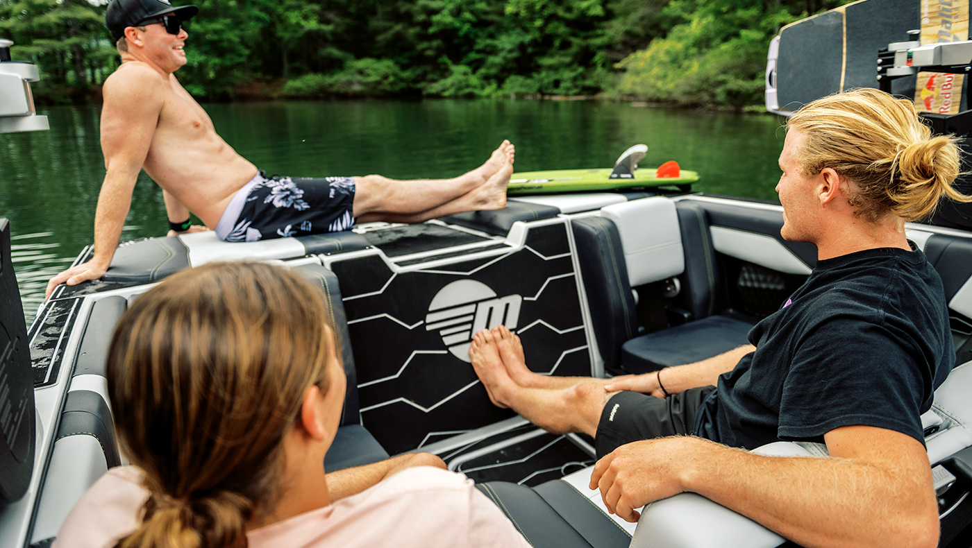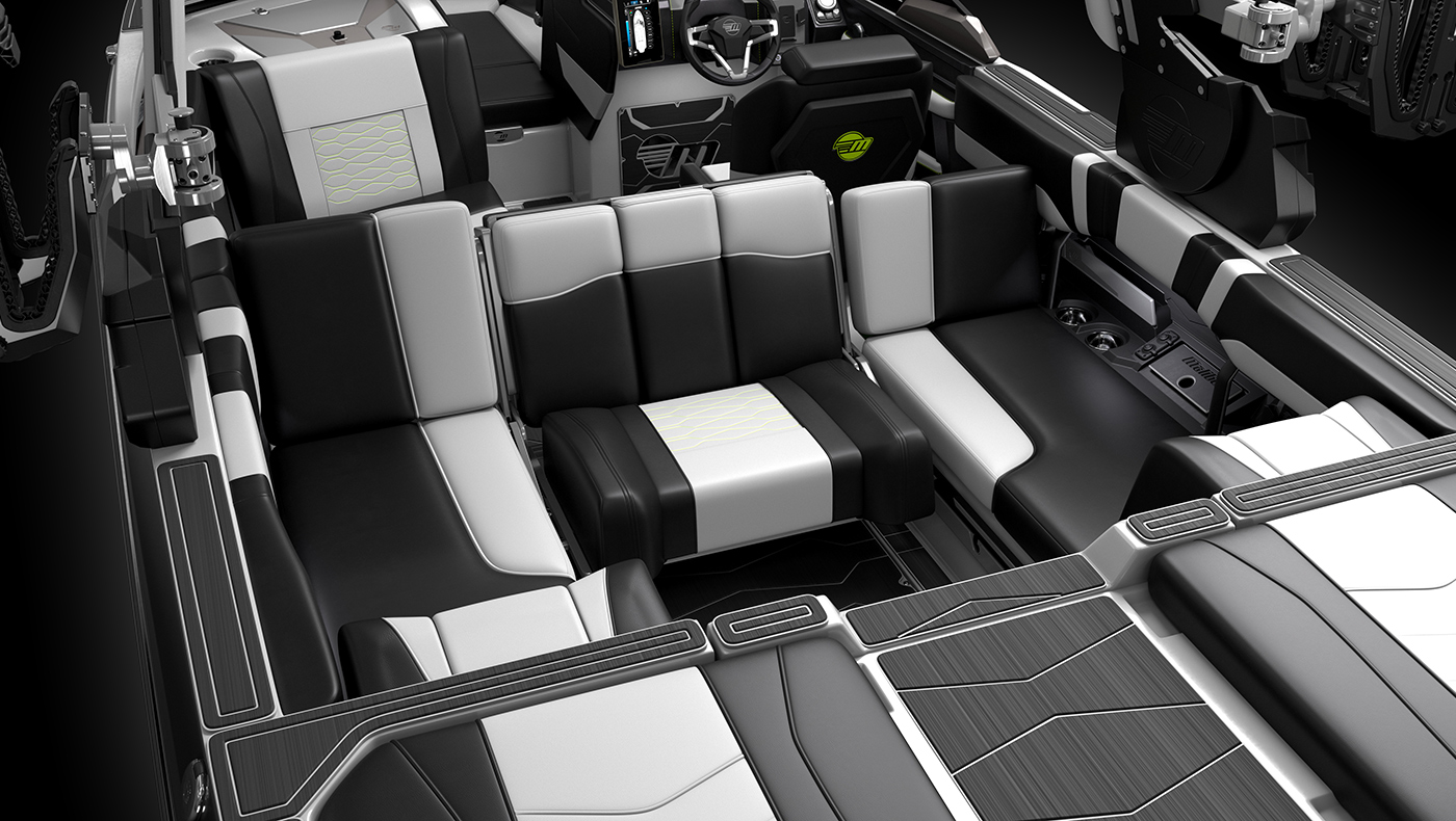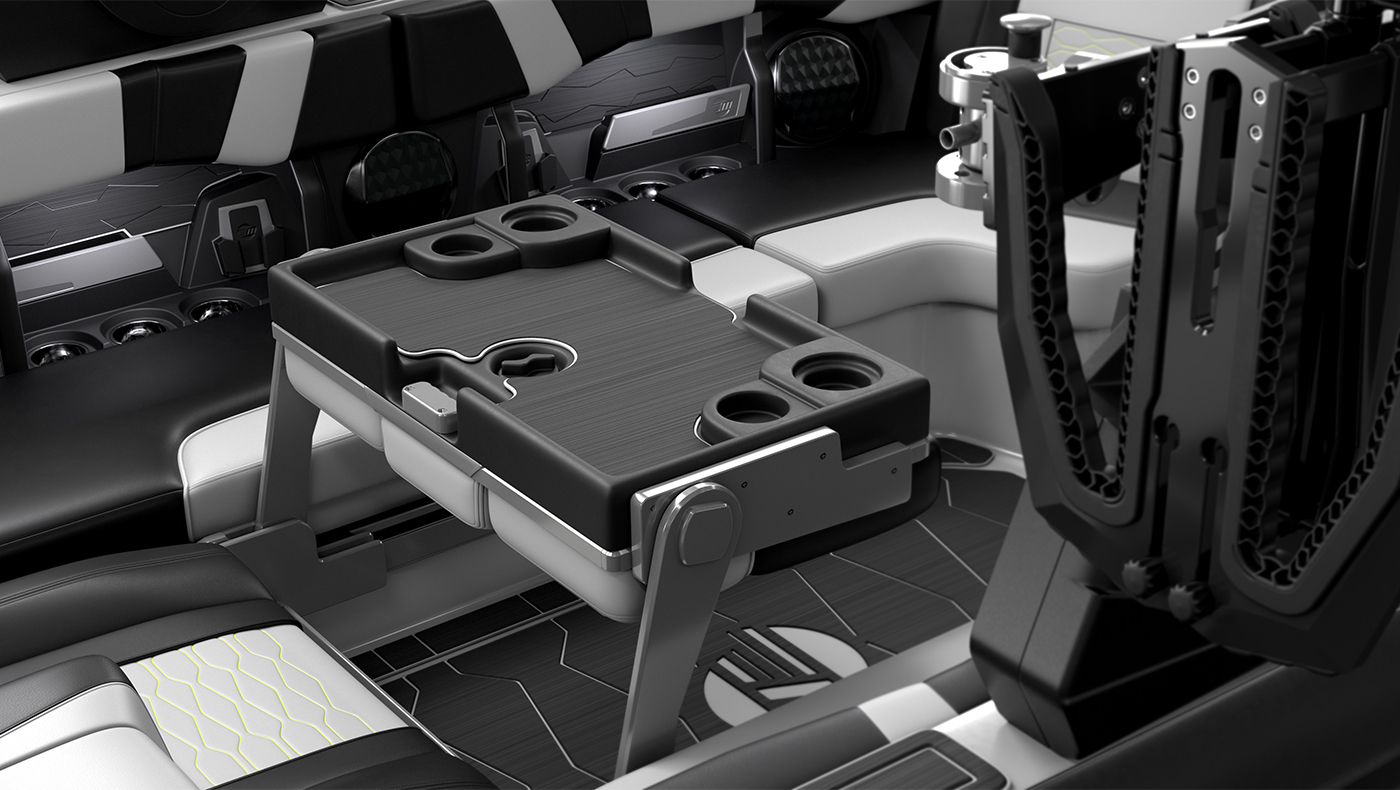 最大限のパフォーマンス、快適性、利便性を追求した23 MXZラウンジは、キルティングCNCパネルに超豪華なフォームバックを採用し、クルーに水上で最も快適なシートを提供します。カップホルダーと電話ホルダー(オプションでワイヤレス充電機能付き)がクルーから容易に手の届くところに用意されています。