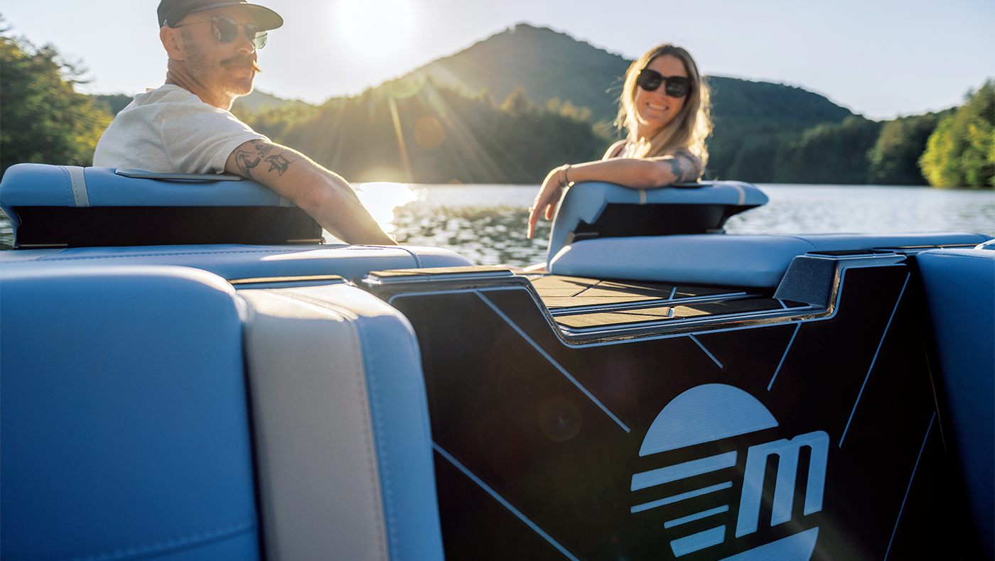 船首からスイムプラットフォームまで、ビニールを踏んだりクルーにつまずいたりすることなく、ソフトグリップの上を歩くことができます。ボートの後方に着いたら、新デザインのトランサムシートでくつろぎ、泳いだ後は日光浴ができます。