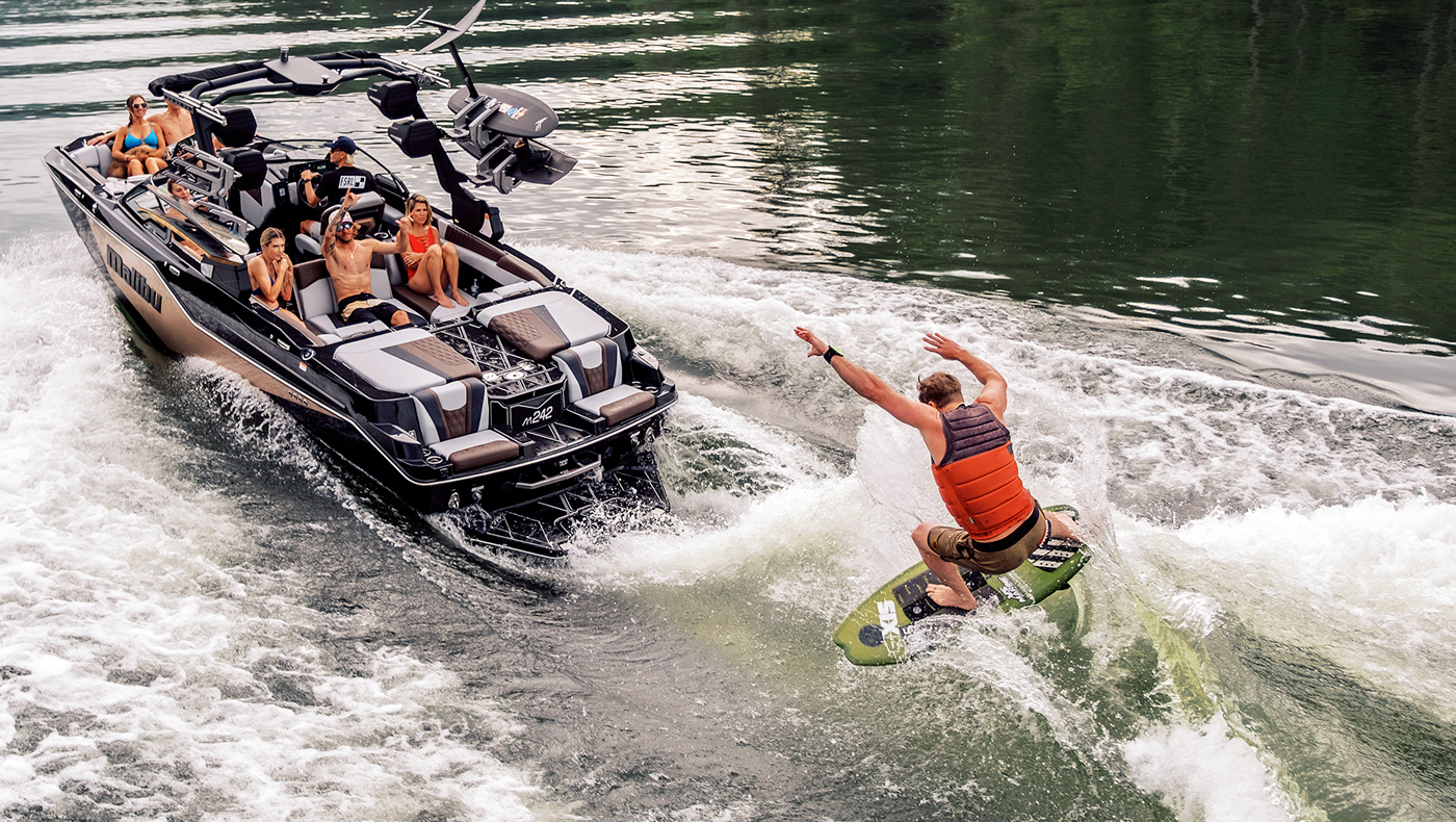 他の追随を許さないパフォーマンス、最先端のイノベーション、そしてボートの中も後ろも最高級の体験をお求めなら、最高級モデルのMalibu M242が、夏の海の一日をパーフェクトに演出します。さあ、水上に出かけよう。