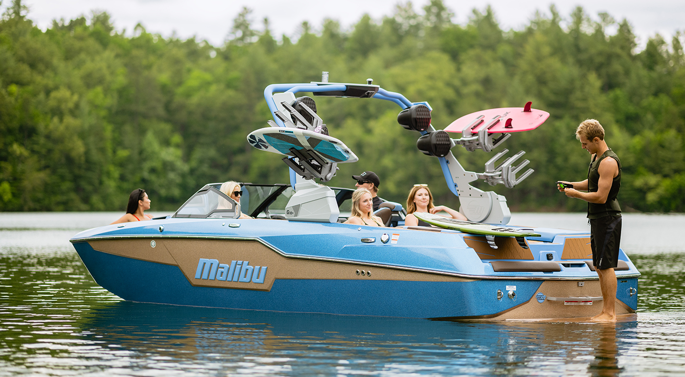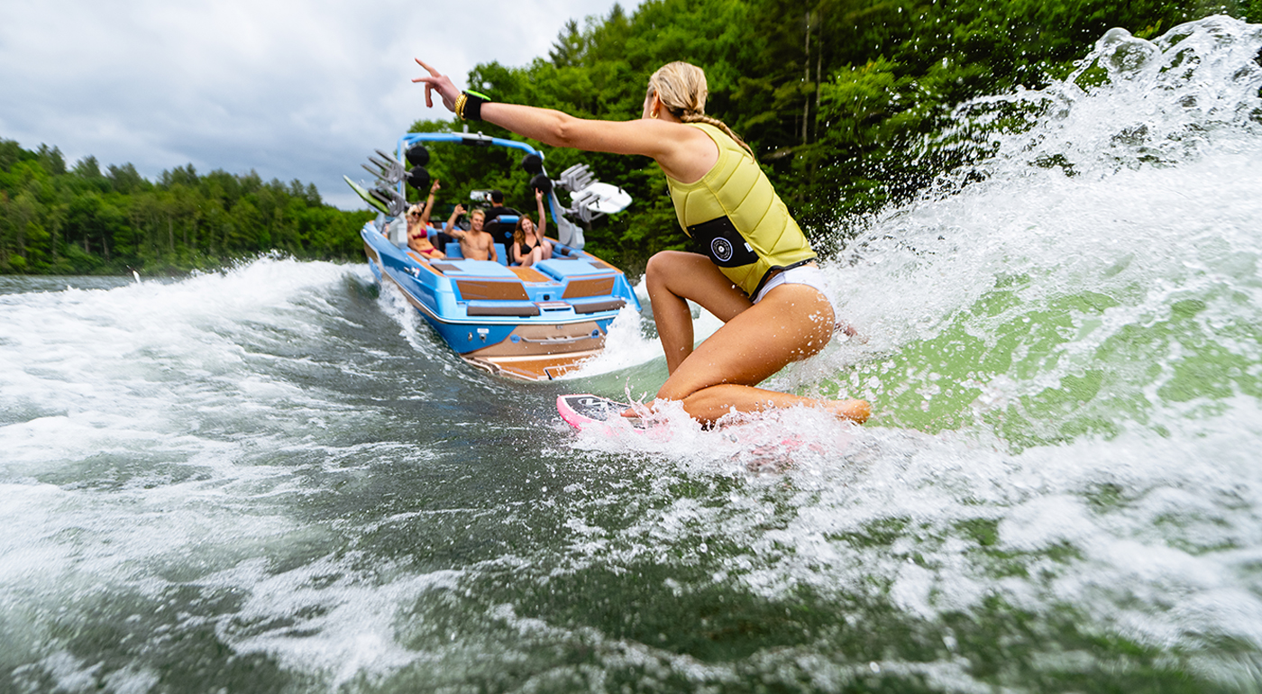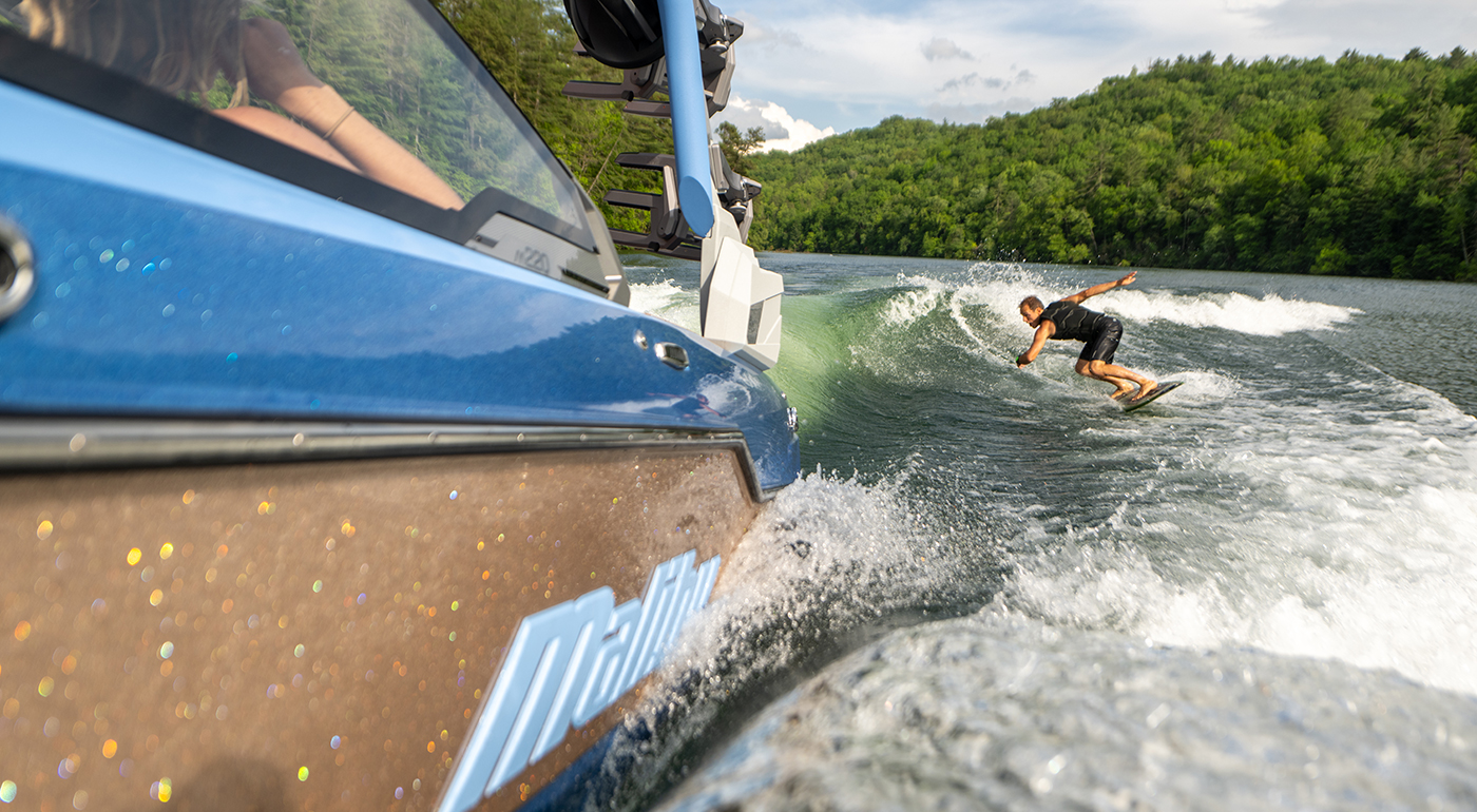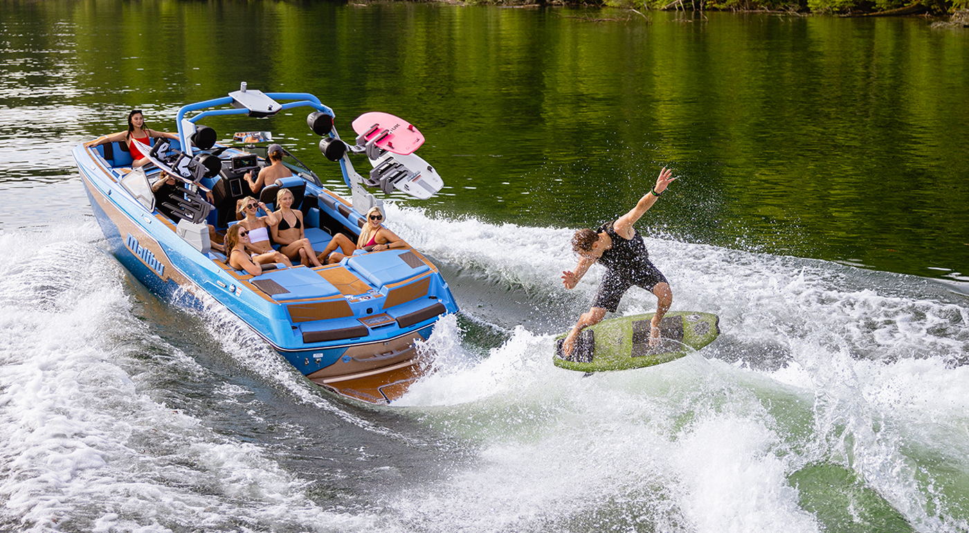 ユニークな「M-Line」の船体は、世界で最も絶妙なウェイキと波を簡単に作り出します。超高速充填のMalibu Launch System 6 Ballast™、Surf Gate® Fusion、そしてPower Wedge® Ⅲが、今日の海で最高のビハインド・ザ・ボート体験を生み出します。