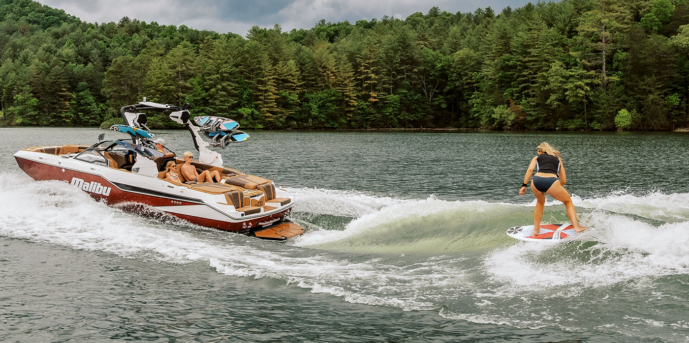 新しくラインナップに加わったマリブ M230 は、最もプレミアムな水上体験を提供するためにきめ細やかに作られました。印象的な Mシリーズのプロフィールと高めのフリーボードを特徴とする M230 は、水上での広々とした感覚を提供し、より多くのクルー、より多くのバラスト、そしてより多くの収納スペースを確保しながら、パフォーマンスを犠牲にすることはありません。完璧なパフォーマンスのために設計された Surf Gate® Fusion は、業界で最もスリムな外観プロフィールとクリーンなサーフスウェルを実現するために M-Line ハルに統合されています。艇に乗り込むと、G10+ タワー™、Raise & Laze™ アームレスト、全く新しいウォークスルーのバウデザイン、Max-Relax™ サンデッキラウンジ、カスタムの3層ソフトグリップなど、マリブの素晴らしい革新と細やかな配慮が至る所に見られます。M230 を一目見るだけで、このボートがクラスで最新のプレミアムリーダーである事が解って頂ける事でしょう。